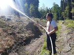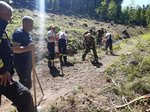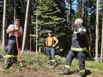 Das zweite Szenario stellte die Erstmaßnahme bei einem kleineren Waldbrand dar. Dabei wurde mit dem Tanklöschfahrzeug der Feuerwehr Altenhof in das angenommene Brandgebiet vorgerückt. Mit Unterstützung zahlreicher Einsatzkräfte wurden Glutnester mithilfe von Hacken und der Wärmebildkamera der Feuerwehr Gaspoltshofen aufgespürt und gezielt abgelöscht. Zur Sicherstellung der Wasserversorgung wurde ein Wasserbehälter hinter dem Tanklöschfahrzeug aufgebaut, der kontinuierlich durch das Wasserfass der Gemeinde gespeist wurde.