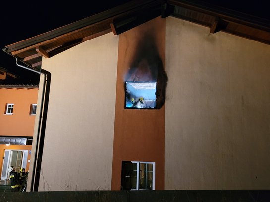 Sofort rüsteten sich drei Mann mit Atemschutz aus und begannen mit einem Innenangriff. Beim Vorrücken in die Brandwohnung wurde eine enorme Hitzeentwicklung festgestellt. Der Trupp musste darauf hin nochmals kurz aus der Wohnung und die Brandbekämpfung erneut starten.