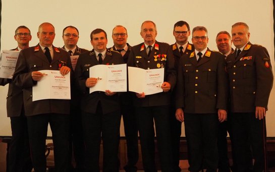 Jene 20 Kommandanten die heuer ihre Funktion beendeten wurde für ihren wertvollen Dienst gedankt und mit einem kleinen Geschenk überrascht.
