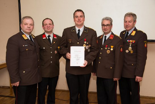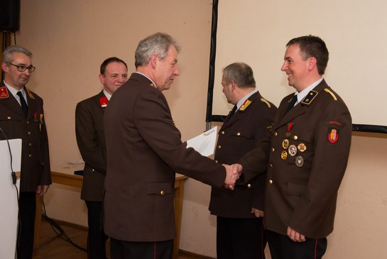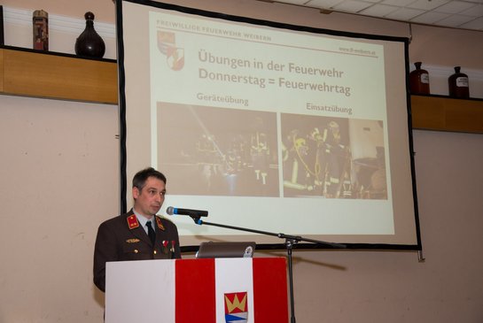 Kommandant Georg Stockinger konnte zahlreiche Ehrengäste wie Bezirks-Feuerwehrkommandant OBR Josef Murauer, Abschnitts-Feuerwehrkommandant BR Franz Oberndorfer und Feuerwehrkurat Mag. Johannes Blaschek sowie Bürgermeister Manfred Roitinger und Viezebürgermeister Walter Marböck und die Ehrendienstgradträger der Feuerwehr Weibern, angeführt von E-HBI Hubert Hamedinger in der Runde begrüßen. In den Referaten der Kommandomitglieder und des Kommandanten wurde das Jahr 2015 noch einmal durchleuchtet. Von den 136 Mitgliedern (107 Aktiv, 16 Reserve und 23 Jugend) wurden 47 Einsätze (acht Brand und 39 Technische) erfolgreich bewältigt. Für die Ausbildung der Aktiven wurden in 64 Veranstaltungen 1821 Stunden aufgewendet, für die Jugendarbeit wurden 3226 Stunden aufgebracht.