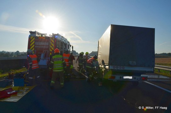 Mit Sirenenalarm wurden am Freitag, dem 8. Juli 2016 gegen 06:20 Uhr die Feuerwehrkräfte aus Haag am Hausruck und Rottenbach geweckt. Ein schwerer Verkehrsunfall auf der Innkreisautobahn A8 in Fahrtrichtung Wels, auf Höhe Aistersheim, war der Alarmierungsgrund.